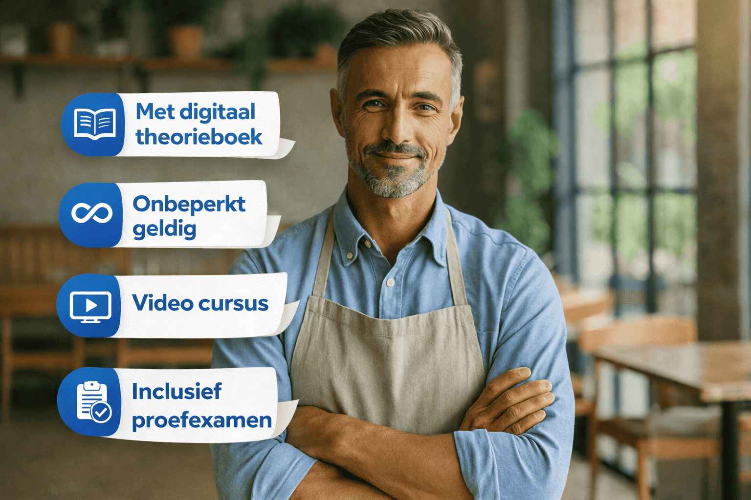 Het Compleet pakket geeft je onbeperkte toegang tot de Sociale Hygiëne cursus. In deze online videocursus leer je stap voor stap alles wat je nodig hebt om verantwoord te werken in de horeca en je goed voor te bereiden op het officiële examen Sociale Hygiëne.